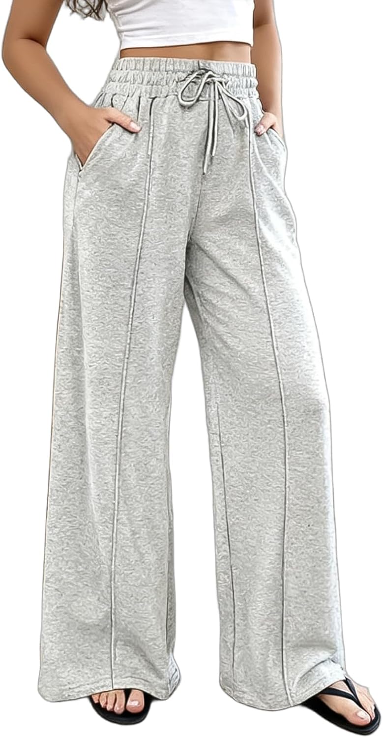 Flamingals Women's High Waisted Baggy Wide Leg Sweatpants Casual Drawstring Athletic Jogger Sweat Pants