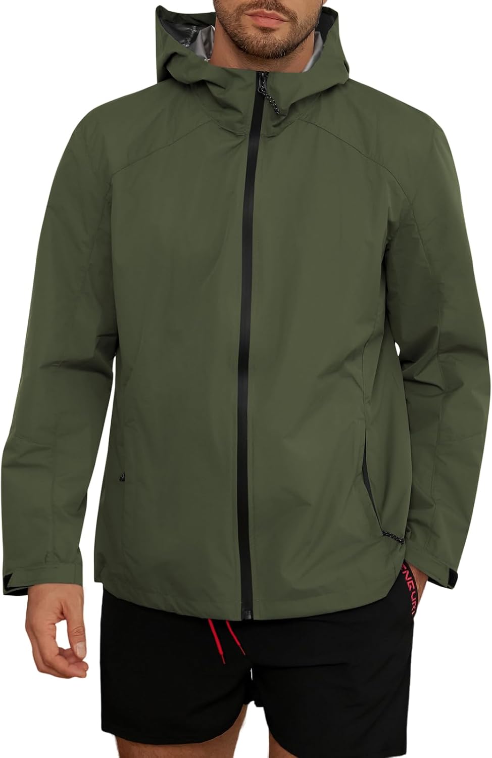 Yousify Mens Waterproof Shell Jacket Full Zip Hooded Raincoat Lightweight Windbreaker for Cycling Hiking Golf Outdoor