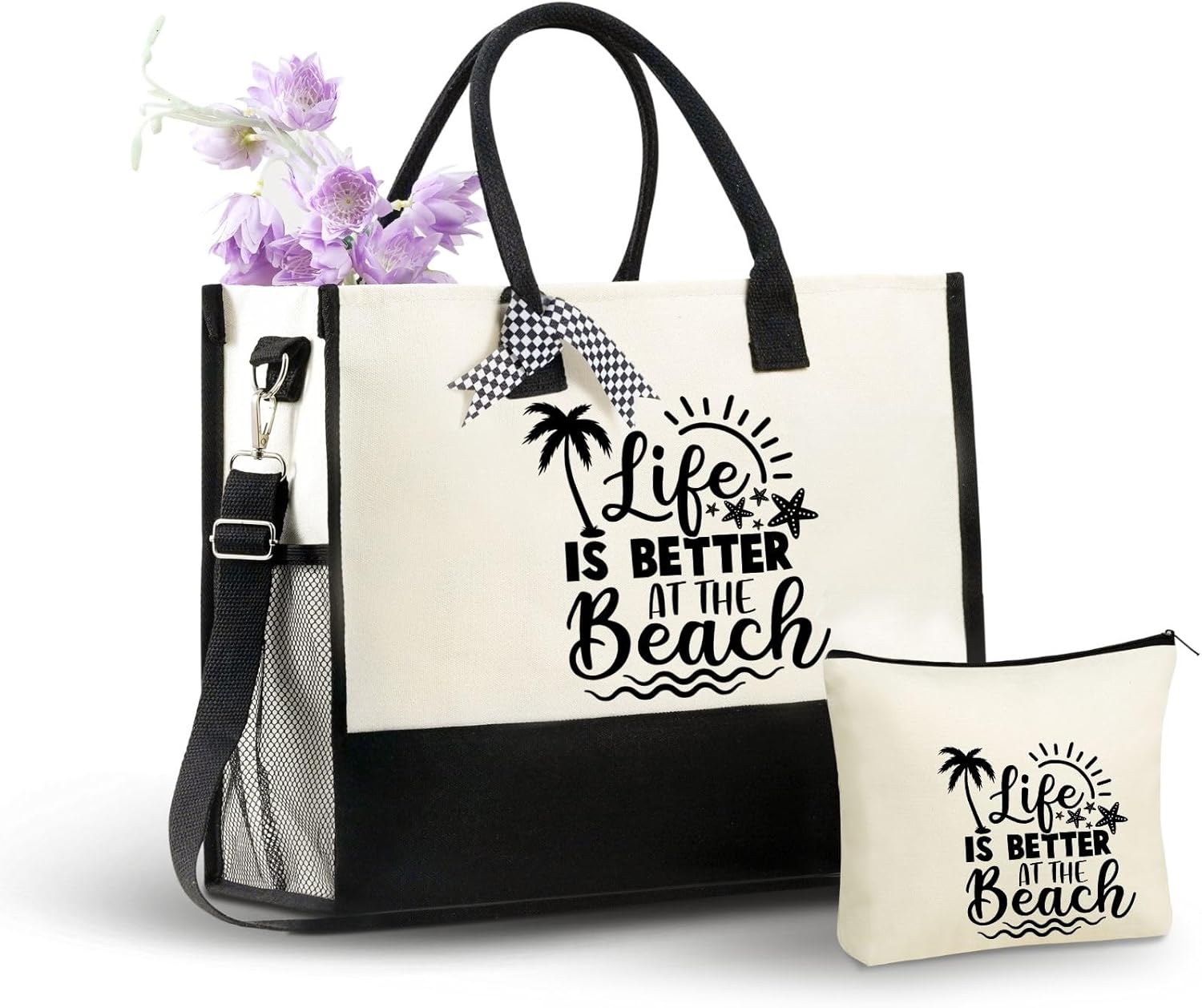 InnoBeta Beach Gifts for Women Canvas Tote Bag, Beach Themed Gifts for Women, Life Is Better at The Beach Bag with Top Zipper Closure and Shoulder Strap for Birthday, Mother's Day, Christmas