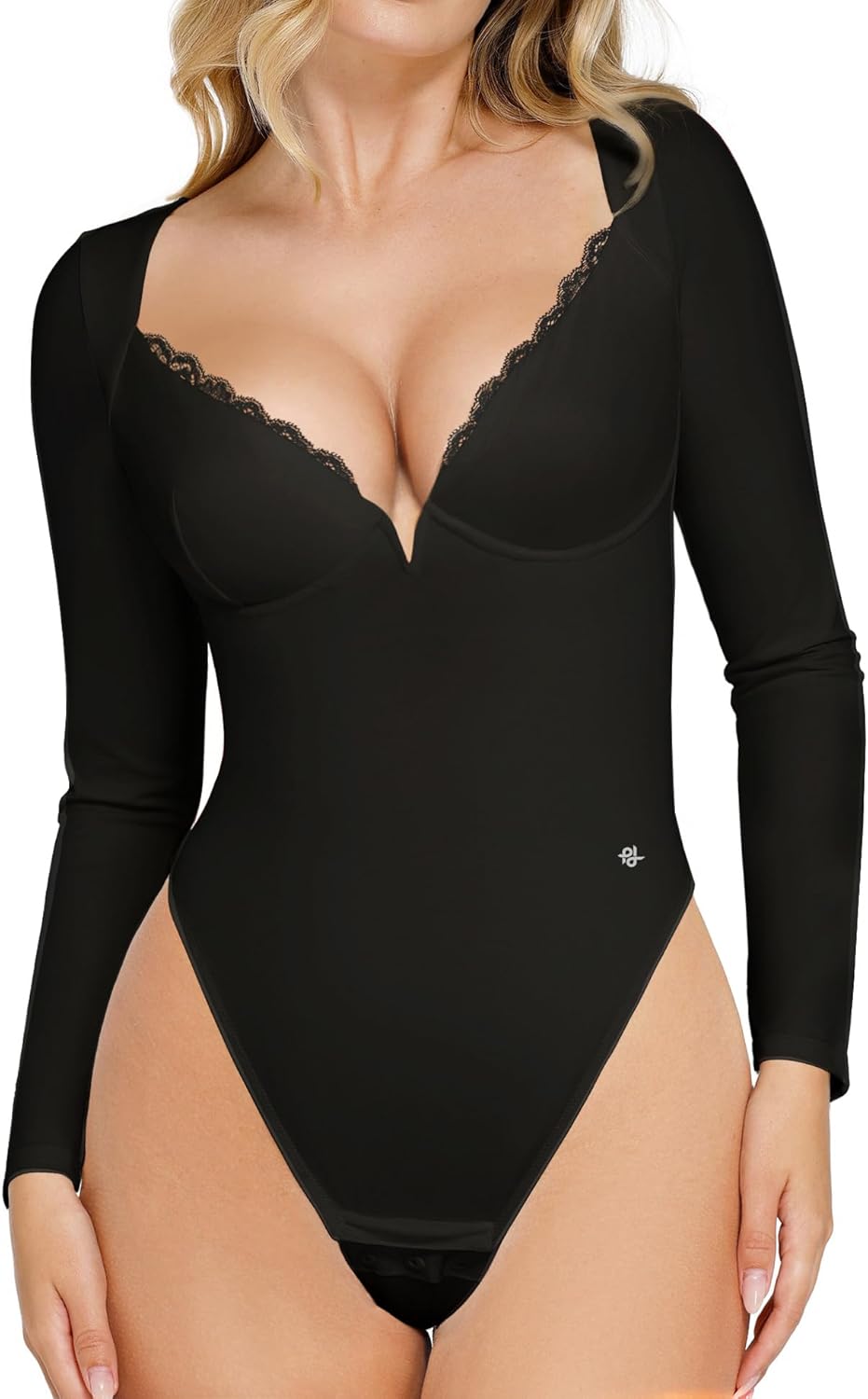 Popilush Long Sleeve Bodysuit for Women Lace Shapewear Body Suits Deep V Tummy Control Corset Trendy Going Out Tops