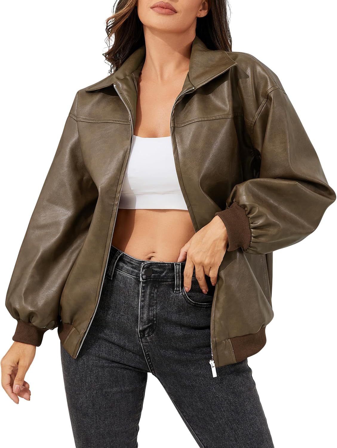 Leather Jacket Women Vintage Washed Faux Oversized Casual Motorcycle Biker Bomber Coats With Pockets 2025 Y2K Trendy