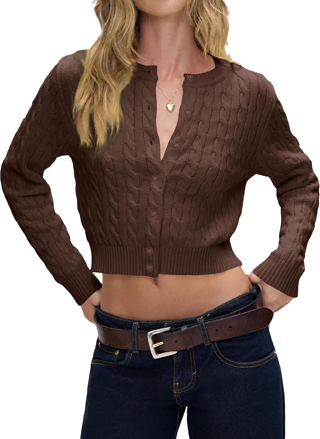 Women Y2k Cute Button Up Open Front Cable Knit Cropped Cardigan Preppy Long Sleeve Pullover Sweater Fall Outfits