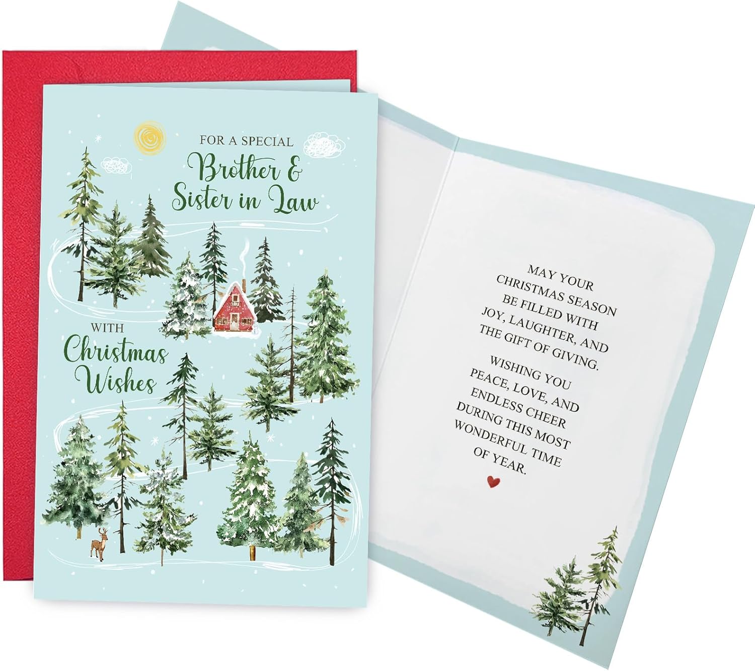 - Sincere Inner Holiday Message: Inside, the heartfelt wish reads: "May your Christmas season be filled with joy..." – a genuine blessing for your brother and sister in law.