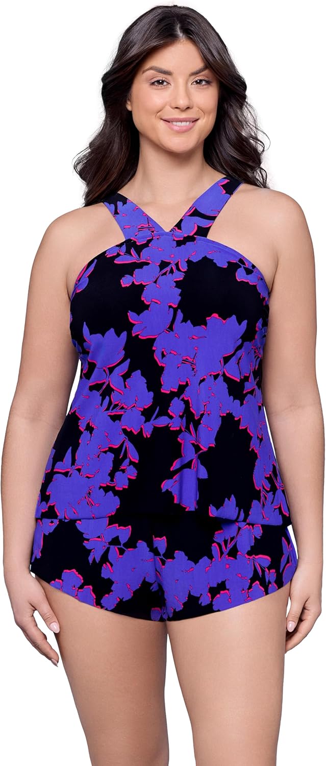 Aqua Green Womens Slimming High Neck Adjustable Swim Romper with Pockets