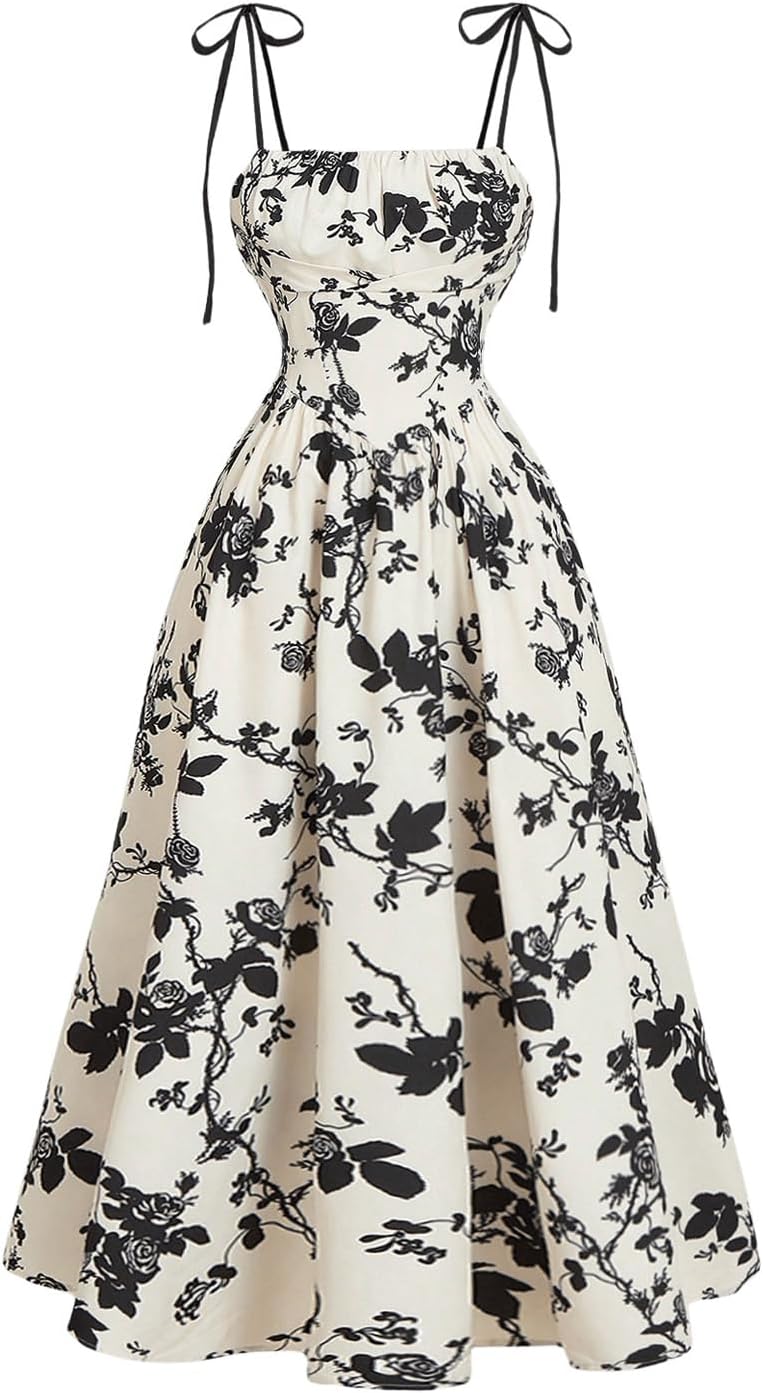 GORGLITTER Women's Floral Print Tea Party Midi Dresses Summer Bow Tie Backless Flowy Easter Prom Wedding Guest Sundress