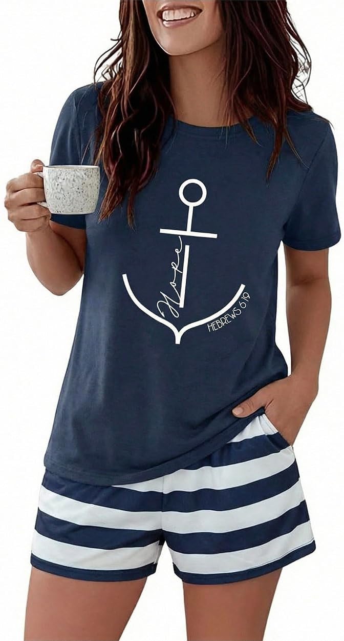 LUKYCILD Womens Pajamas Sets 2 Piece Sleepwear Short Sleeve Tops and Sleep Shorts with Pocket Crew Neck Pj Lounge Sets