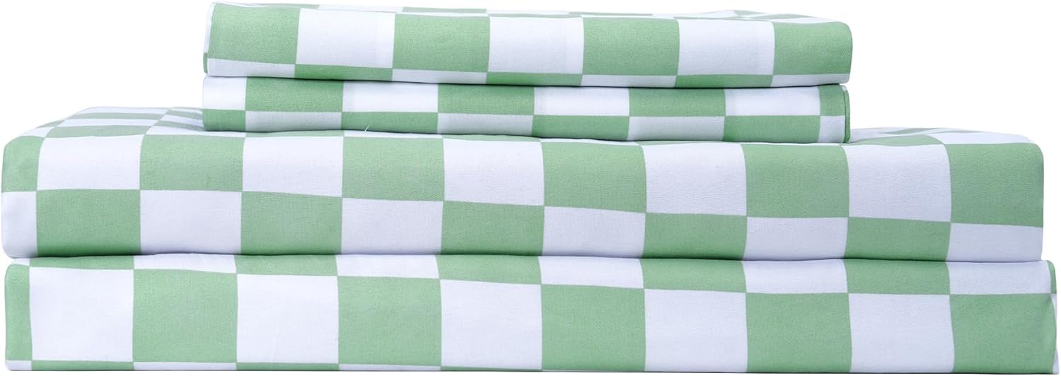 Best Season Bed Sheet Set 3 Piece -Twin Size-Soft Durable Microfiber Bedding Sheet Set,Deep Pocket,Stain,Fade & Wrinkle Resistant Green and White Checkerboard Grid(Plaid Green&White)
