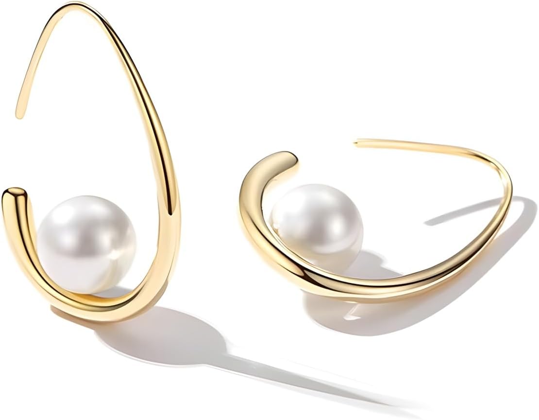 Statement Wedding Bridal Earrings Set, 18K Gold Earrings for Women, Large Oval Hoop Earrings, Long Imitation Pearl Drop Earrings as Birthday Christmas Gifts