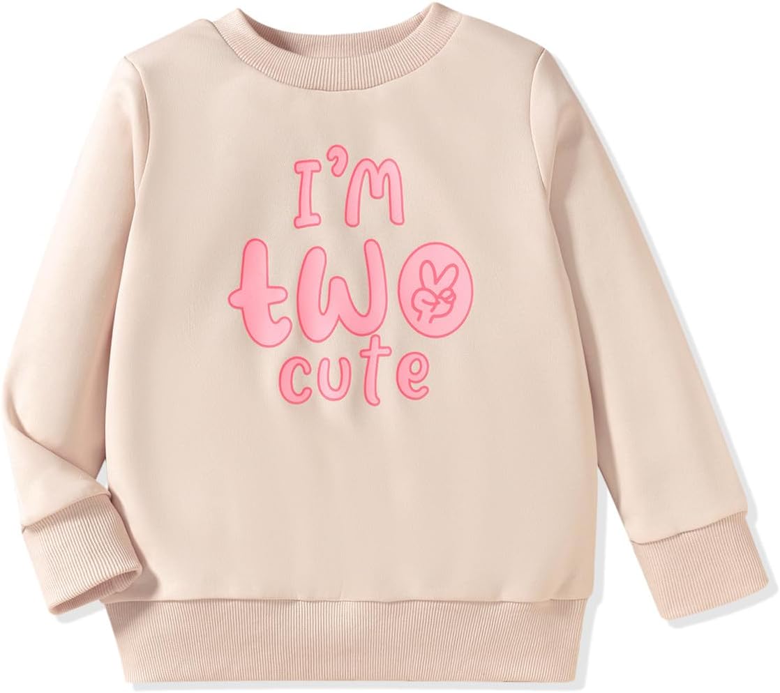 KEKEMI Birthday Sweatshirt for Toddler Girl I’M TWO CUTE Birthday Girl Outfit 2T B-Day Party Long Sleeve Shirt Cute Fall Tops