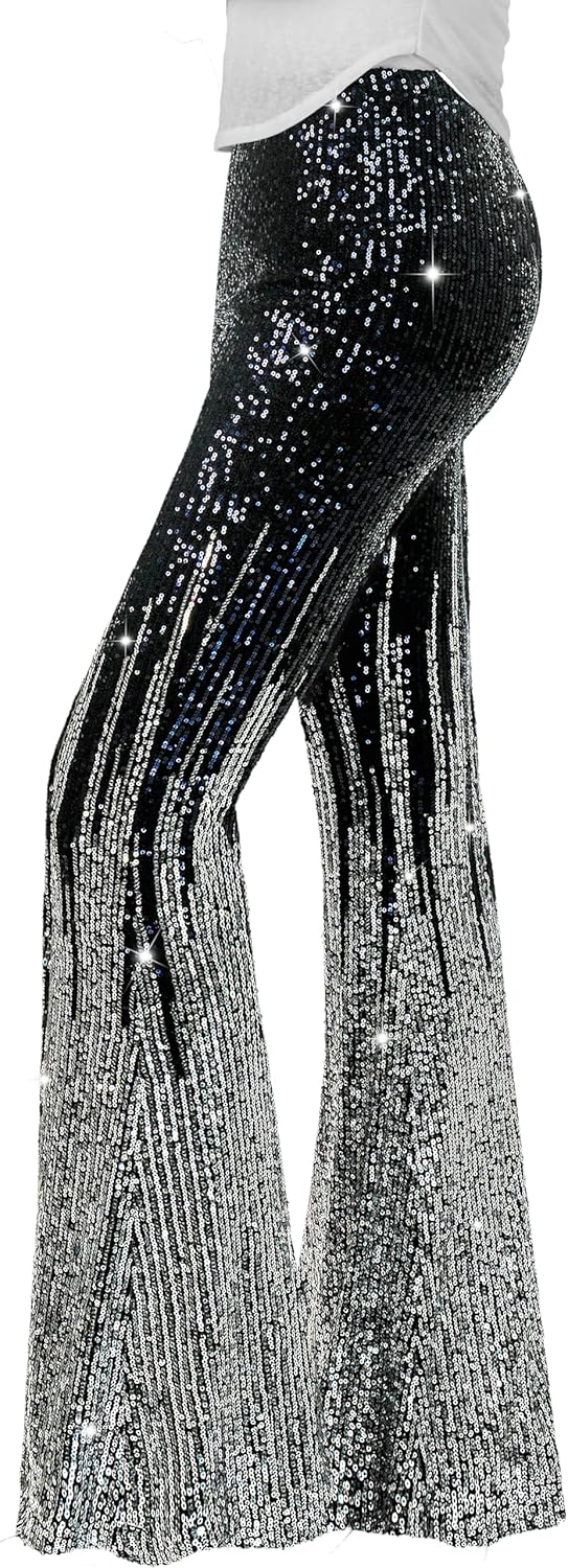 Nawgut Sequin Flare Pants Sparkly Glitter High Waisted Bell Bottom Trousers Disco Party Clubwear for Women