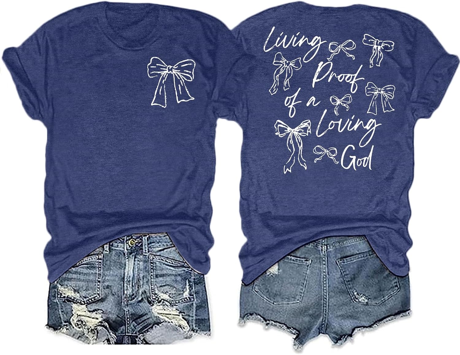 But God Shirt Women Christian Tshirt Bow Graphic Jesus Faith Sayings Tee Religious Bible Verse Inspirational Tops