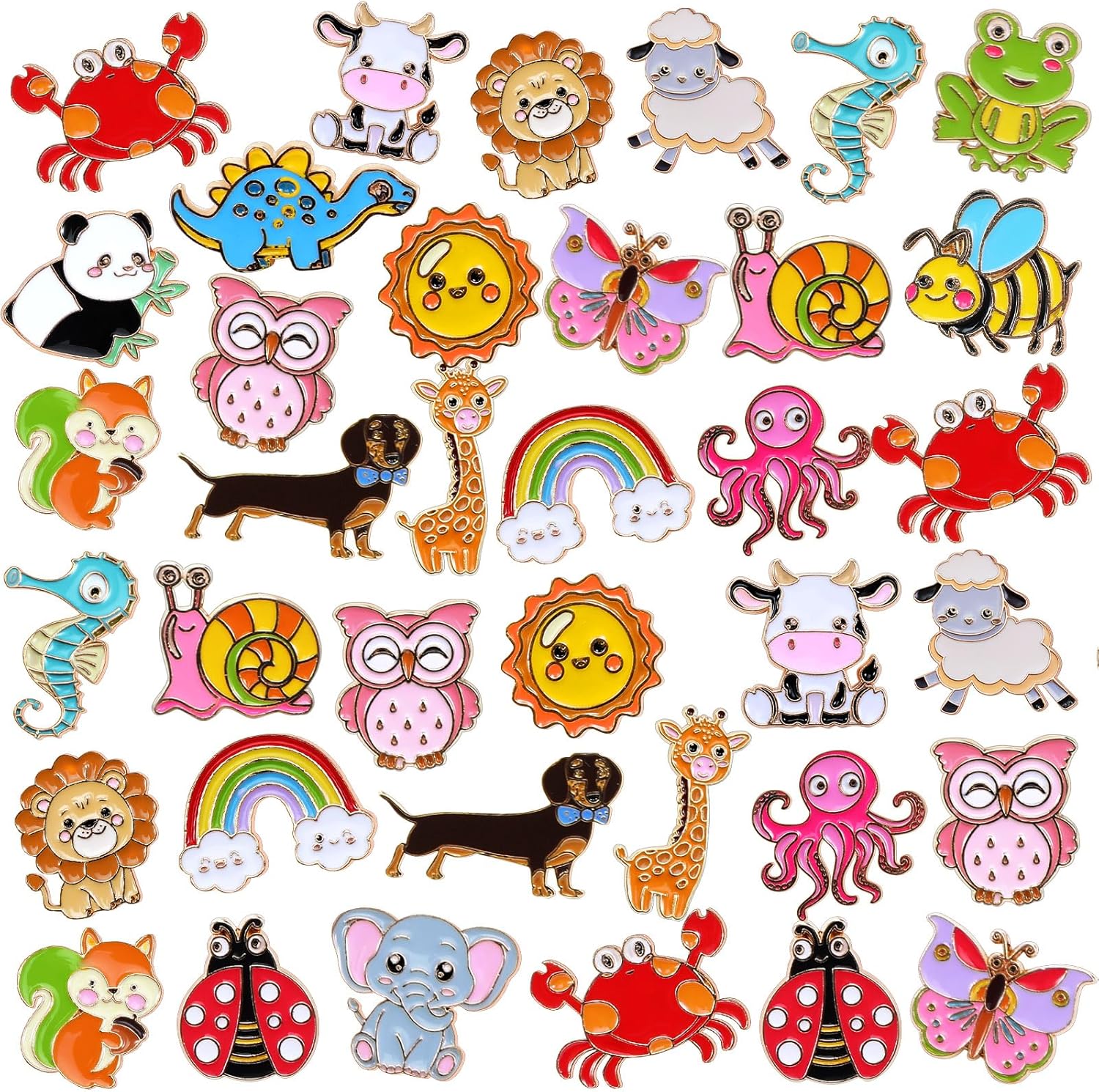 Hoteam 60 Pcs Cute Spring Enamel Pins for Backpack Cartoon Animals Lapel Brooch Bulk Funny Trading Pins Bulk for Hat Clothes Cute Christmas Party Favor Gifts Decorations