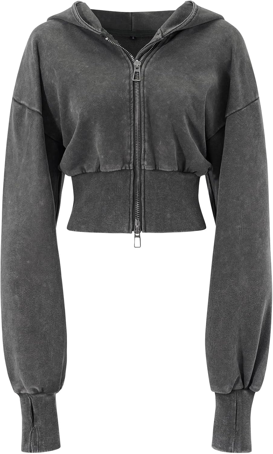 Gihuo Womens Cropped Hoodie Zip Up Sweatshirt Long Sleeve Hooded Workout Jacket 2026 Washed Crop Top