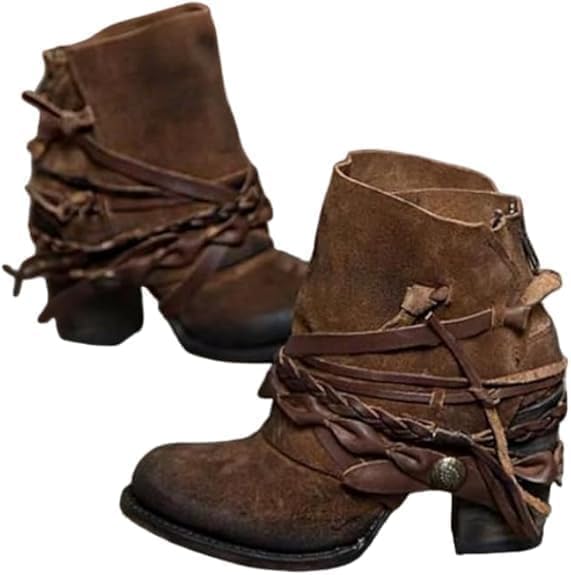 Women's Suede Ankle Boots Chunky Heel Ankle Booties Back Zipper Western Boots for Ladies - Bohemian, Casual