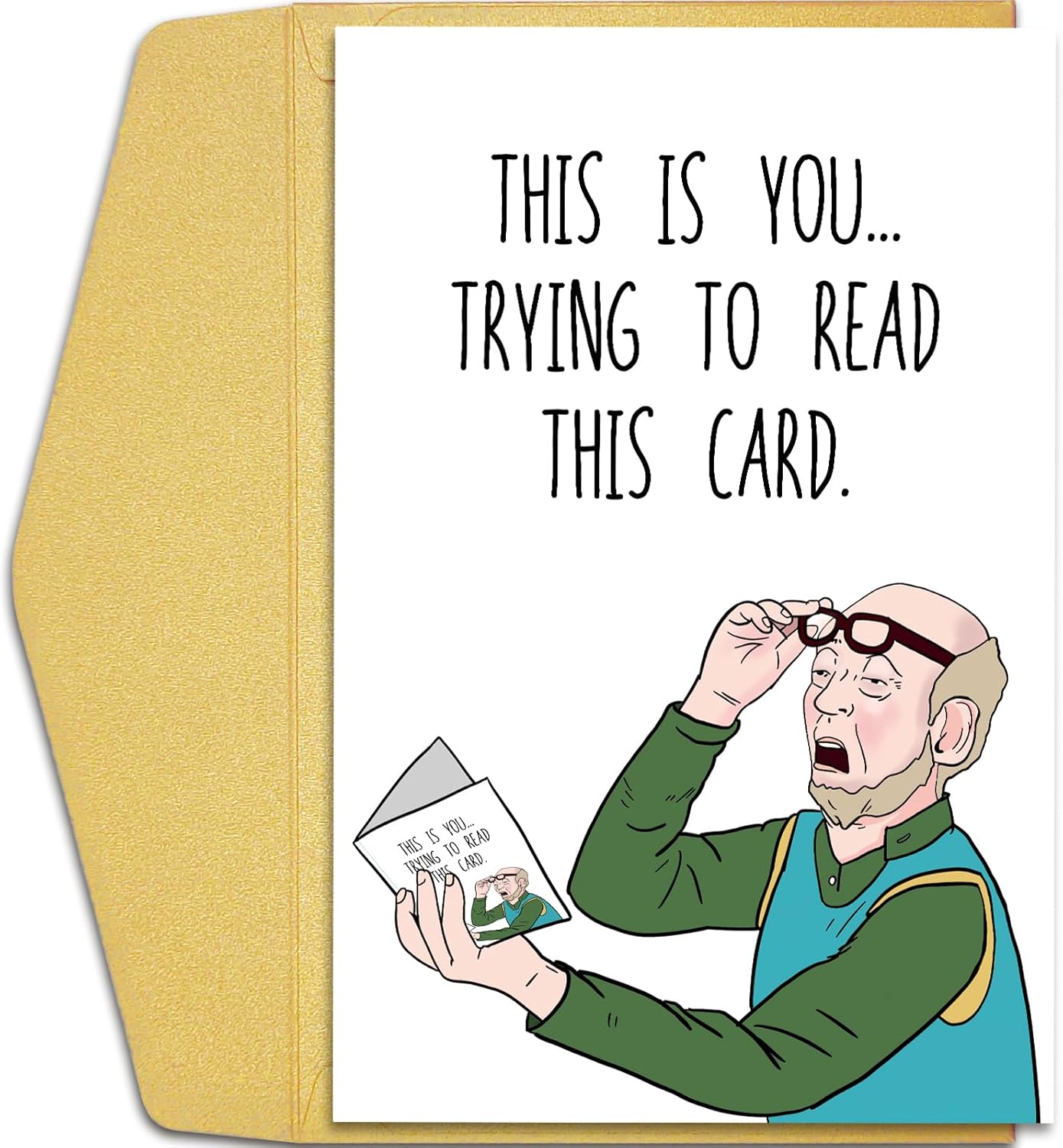 Qiliji Funny Birthday Card for Dad Grandpa Husband, Humorous Father's Day Card for Him, Bad Eyesight Christmas Card, Old Age Card for Men, This Is You Trying to Read This Card