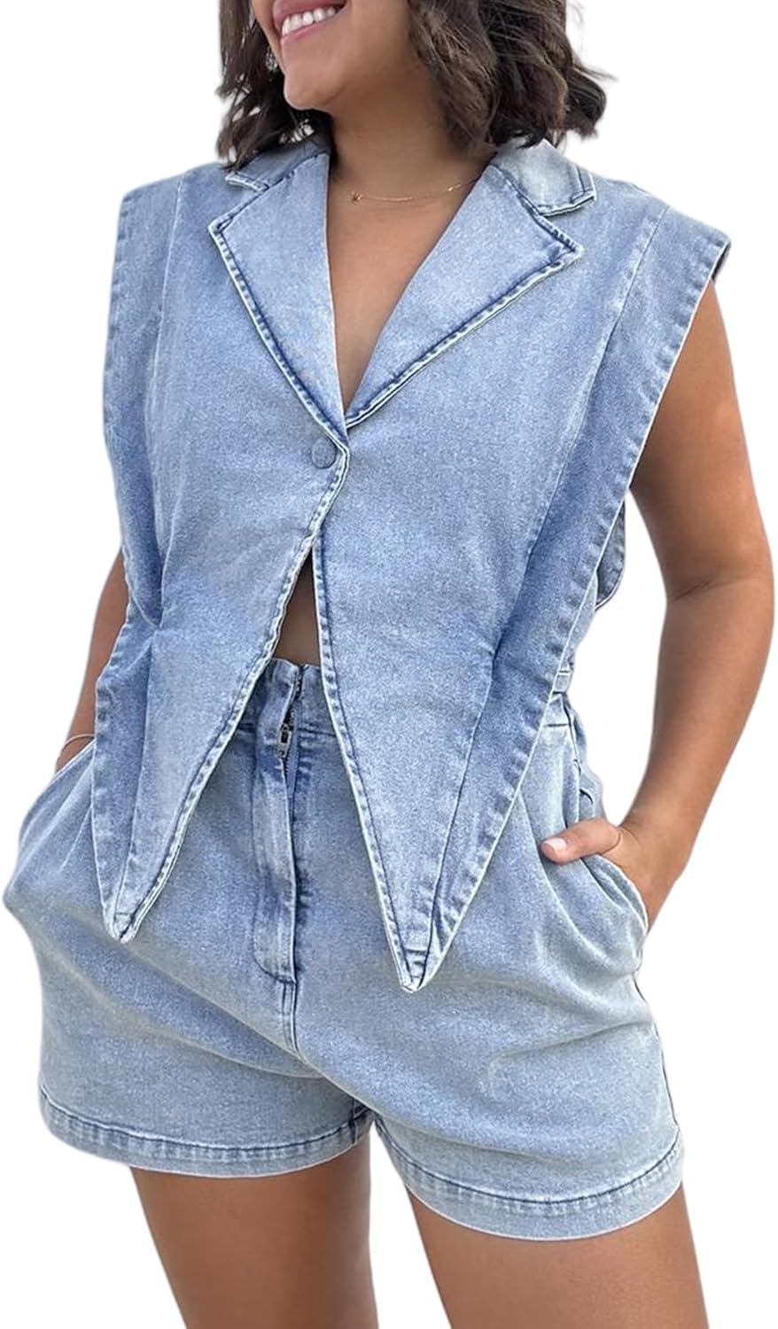 HuiSiFang Women's Denim Jumpsuit Casual Short Triangle Cutout Loose Fit Romper Vintage Jean Jumpsuit