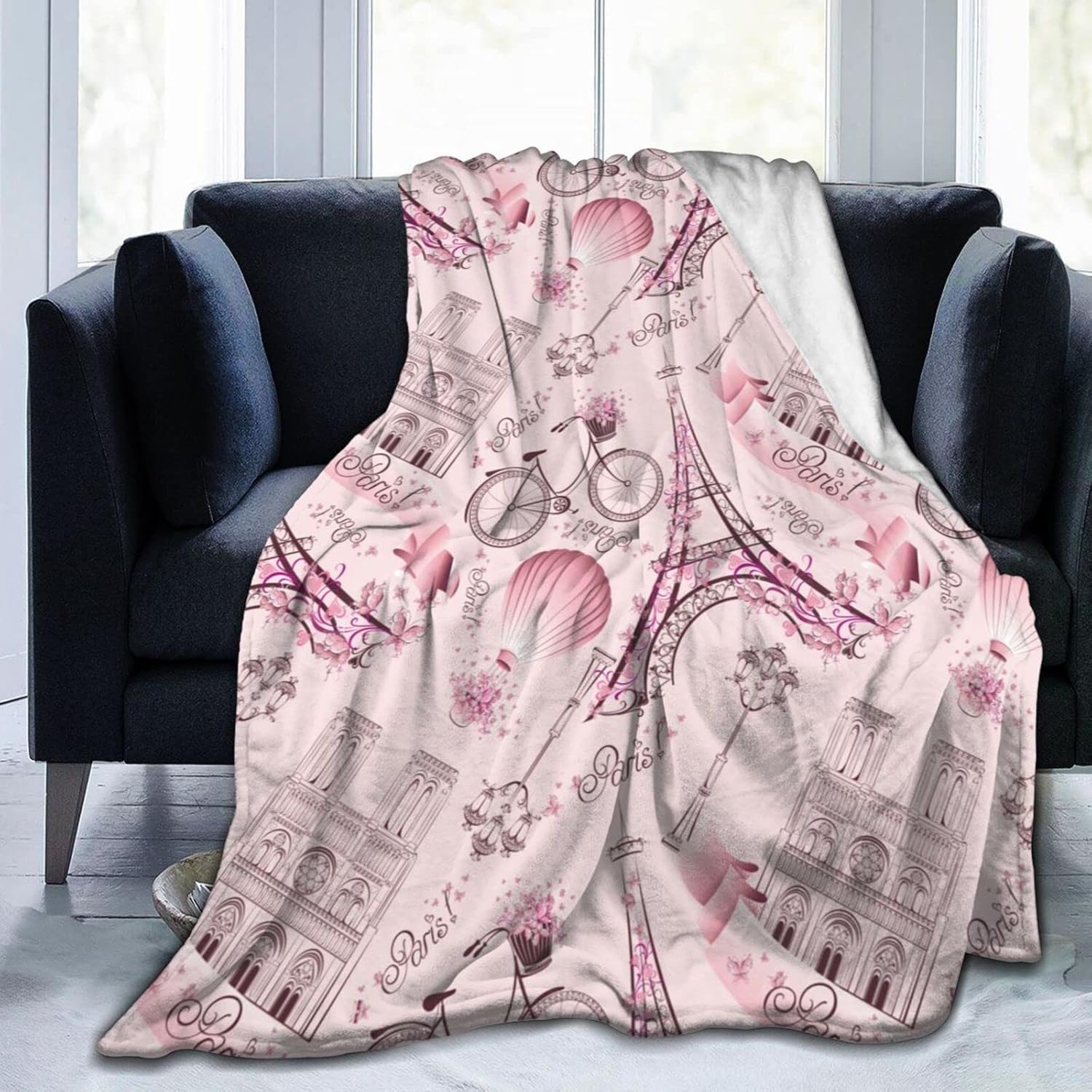 Perinsto Paris Eiffel Tower Throw Blanket Ultra Soft Warm All Season Romantic Travel in Paris Decorative Fleece Blankets for Bed Chair Car Sofa Couch Bedroom 60"X50"