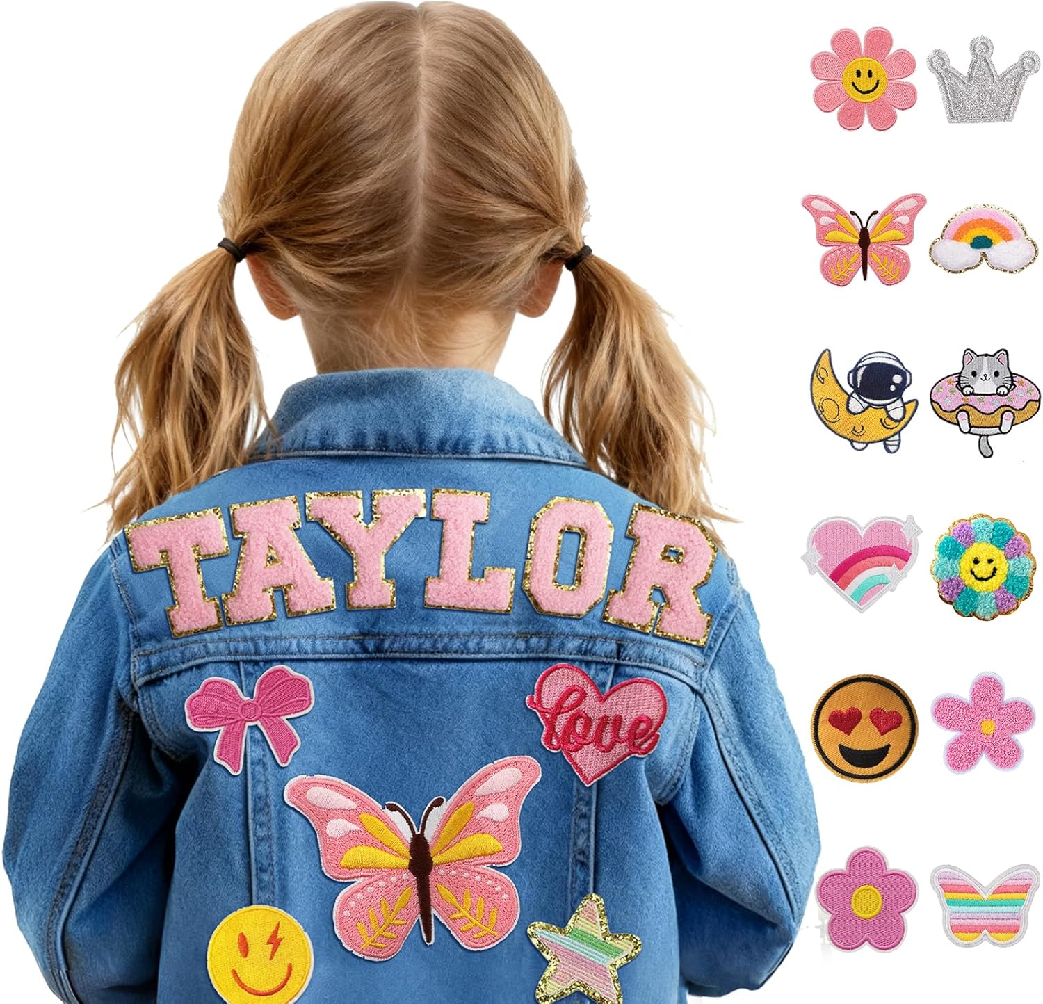 Personalized Denim Jacket for Girls with Names Patches, Back to School Clothes, 1-8 Year Old Birthday Gifts for Toddler Boys Girls Clothes, Custom Toddler Jean Jacket Personalized Baby Girl Gifts
