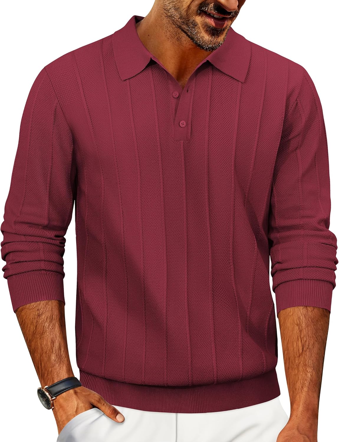 COOFANDY Mens Knit Polo Long Sleeve Polos Sweater Causal Collared Golf Sweaters Fashion Business Dress Pullover
