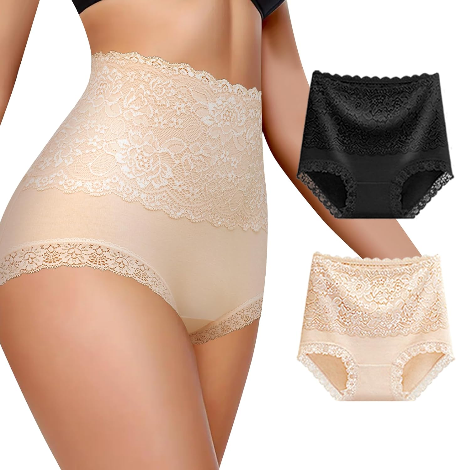 Women High Waisted Cotton Underwear Sexy Soft Lace Panties Breathable Full Coverage Ladies Brief Multipack