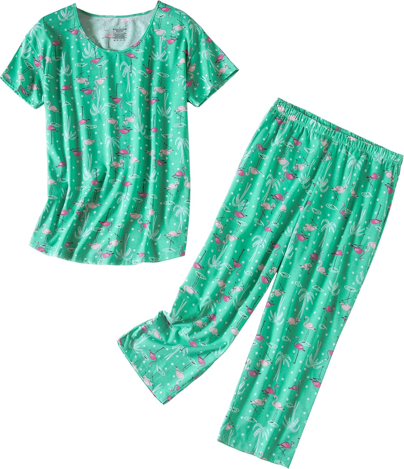 PNAEONG Women’s Pajama Set - Sleepwear Tops with Capri Pants Casual and Fun Prints Pajama Sets SY215-Purple-XL