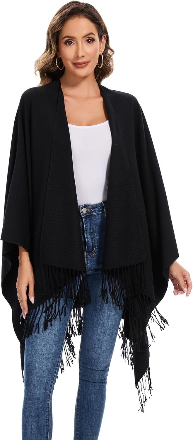 Shawl Wraps for Women, Elegant Knitted Cape Open Front Poncho Scarf Blanket Cardigan Coat for Spring, Autumn, and Winter