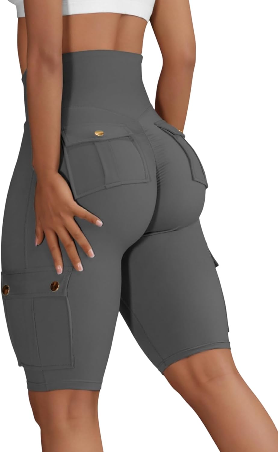 Wavar Biker Shorts for Women Scrunch Butt Cargo Shorts High Waist Tummy Control Workout Yoga Running Athletic Shorts