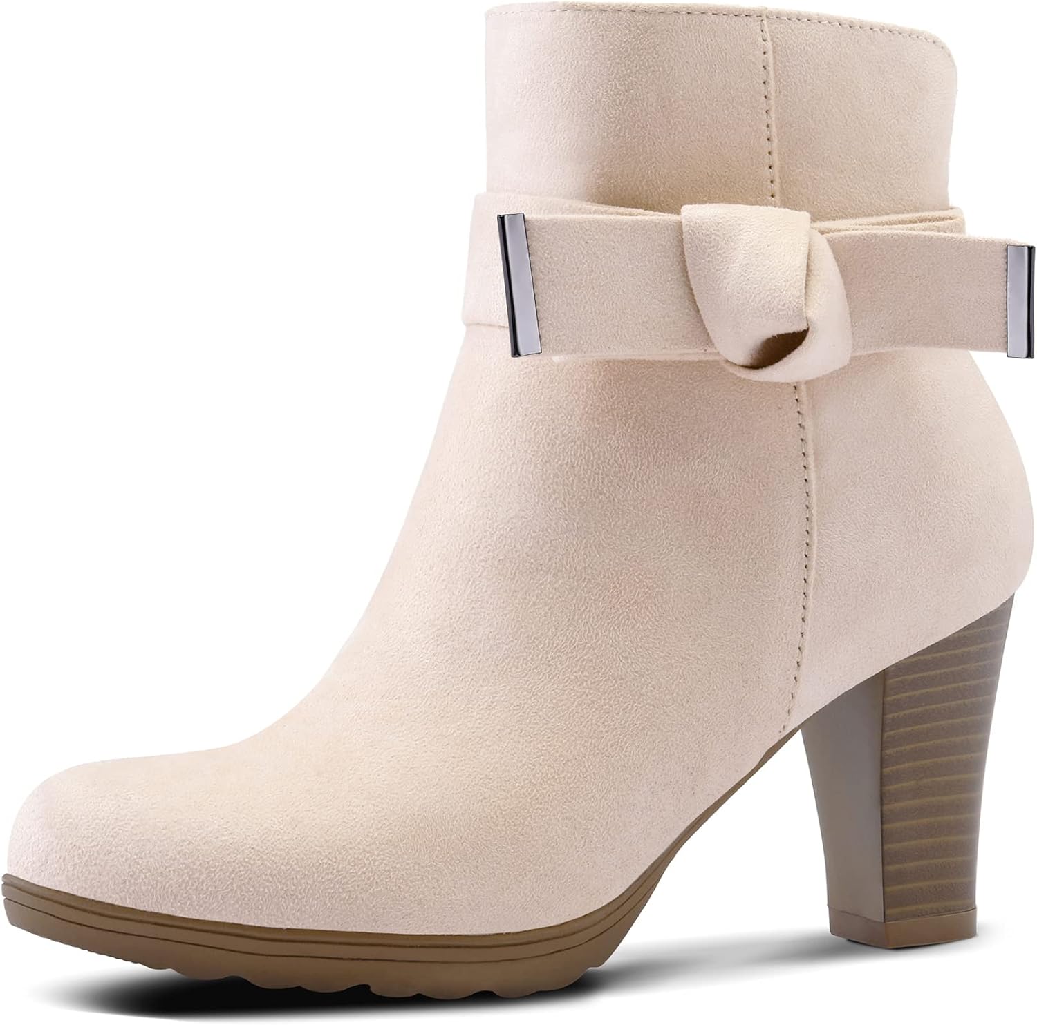 mysoft Women's Booties with Heel, Chunky Stacked Heel Zipper Ankle Boots for Ladies