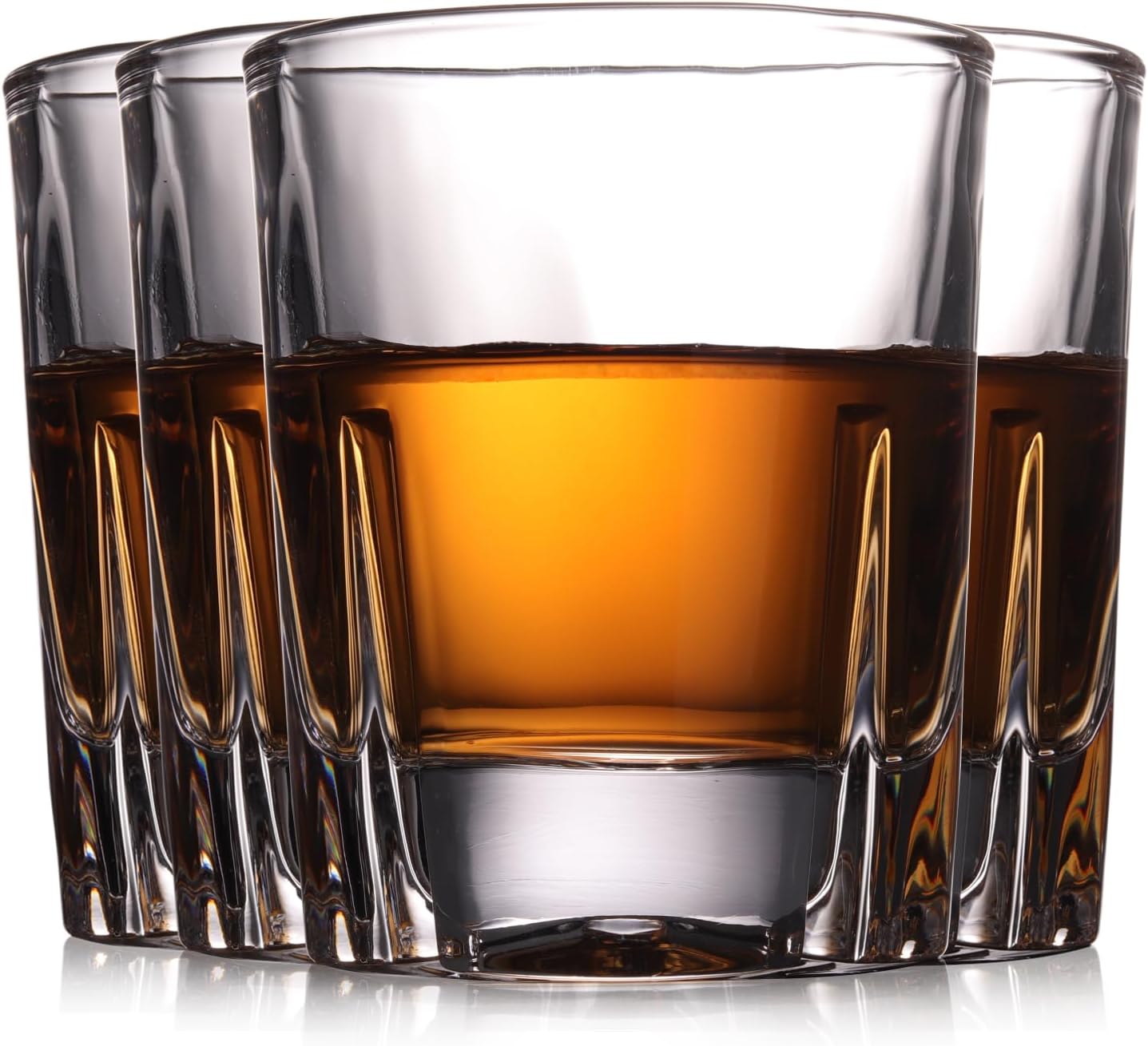 Whiskey Rocks Glasses Set of 4, 6.5 oz (185 ml) Clear Drinking Cups with Heavy Solid Base, Good for Bourbon Jack Daniels Tennessee and Scotch