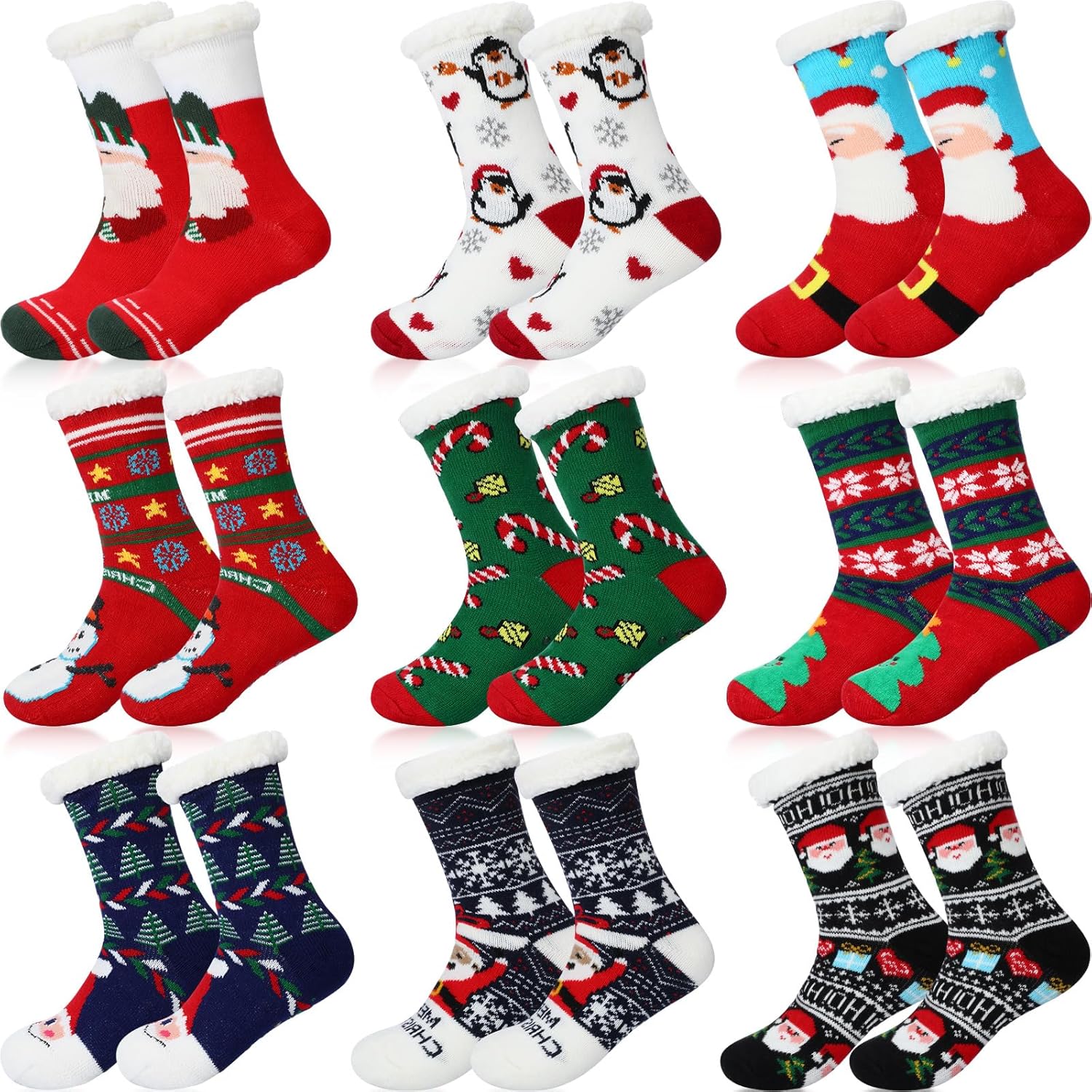 Suhine 9 Pairs Christmas Fuzzy Slipper Socks Winter Warm Fuzzy Women Christmas Pattern Socks Gifts,Soft Non Skid