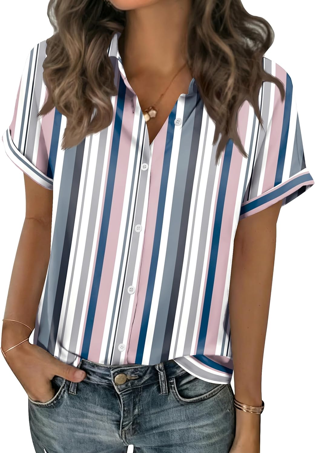 Zeagoo Short Sleeve Summer Tops for Women Casual Button Down Shirts Solid/Striped Business Work Blouses