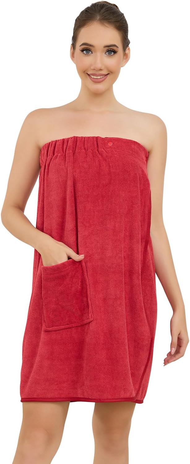 Air Curvey Women's Soft Wrap Towel Shower Wrap Robe Lightweight Spa Body Wrap Adjustable Closure Bathrobe With Pocket