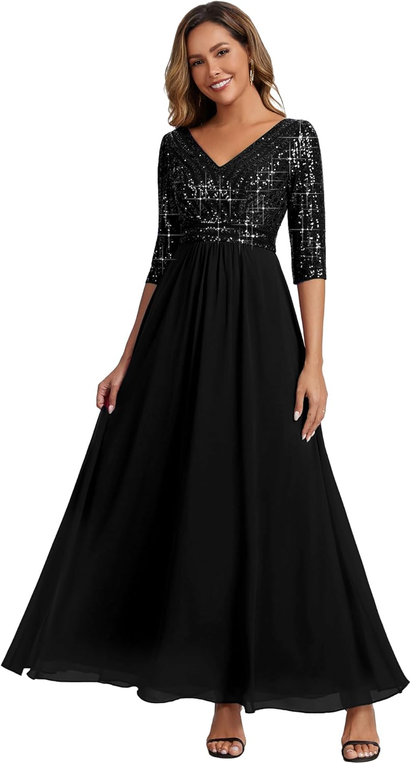 Ever-Pretty Women's Sequin Formal Evening Dress V-Neck Half Sleeves Floor Length A-Line Mother of The Bride Dresses 00756