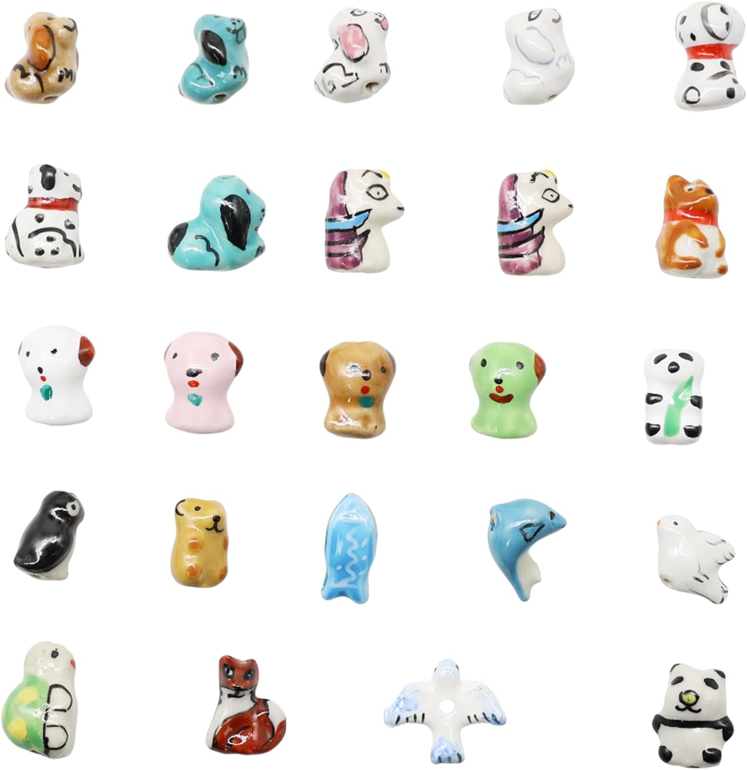 - 【Package Contents】Set includes 24Pcs of ceramic animal beads in randomly mixed colors. Size is 20mm, and the hole diameter is 2mm,weight is 2g/pcs.