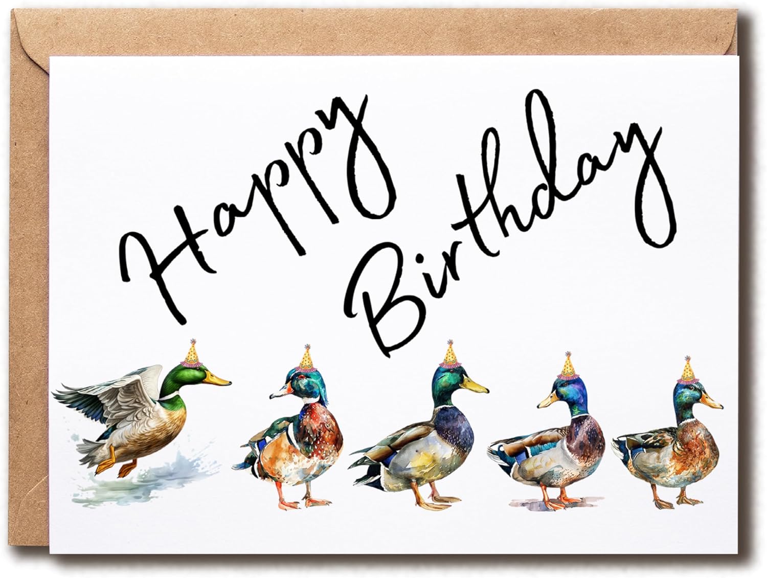 Ducks In Party Hats Card - Duck Birthday Card - Happy Birthday Card - Cute Ducks Card - Duck Lover Card - Animal Birthday Card - Lovely Card