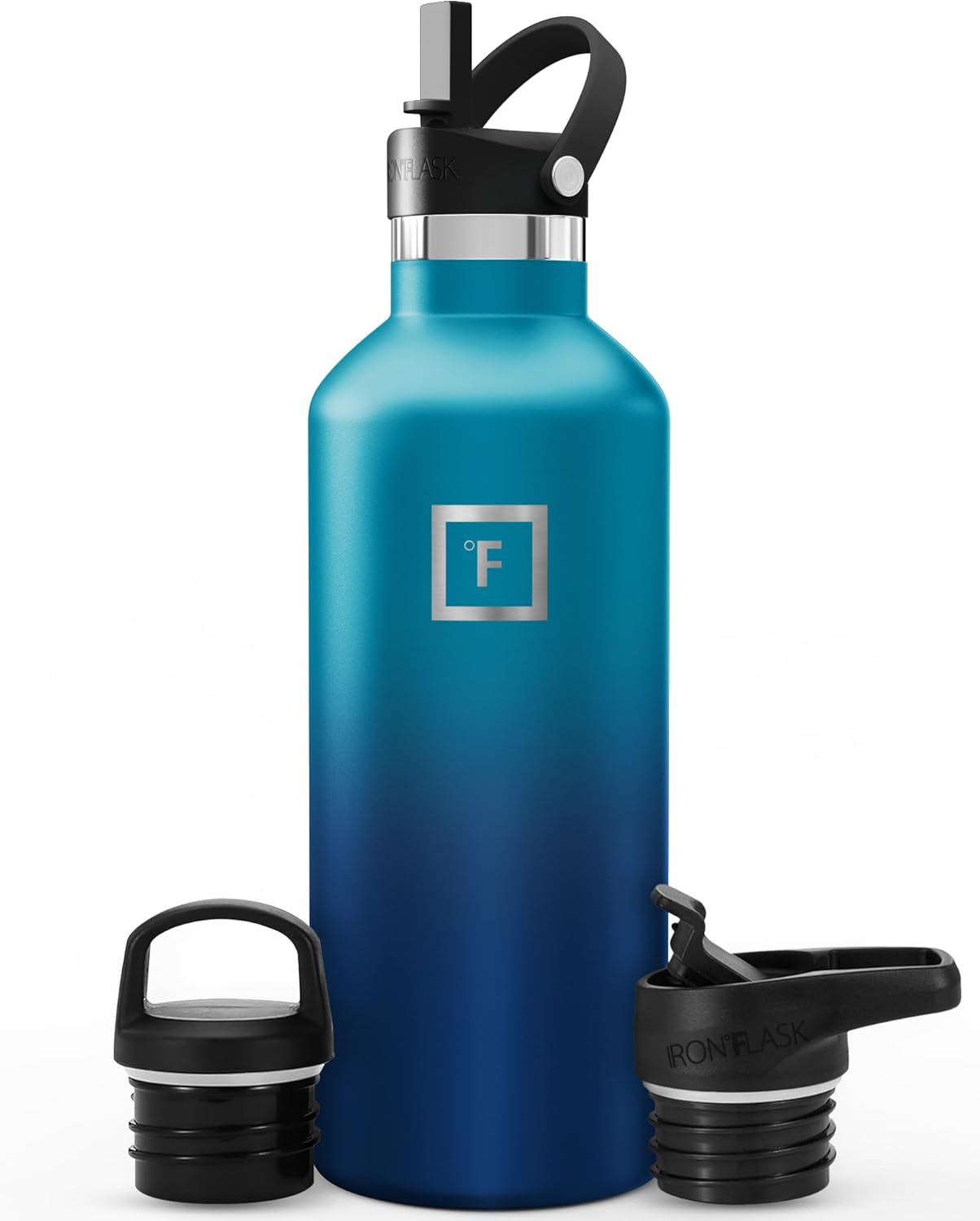 - VERSATILE 3-LID DESIGN: The Iron Flask boasts a trio of leakproof lids – the patented Straw Lid for easy sipping, the convenient Flip Lid, and the carry-friendly Handle Lid. Tailor your hydration experience for any activity!