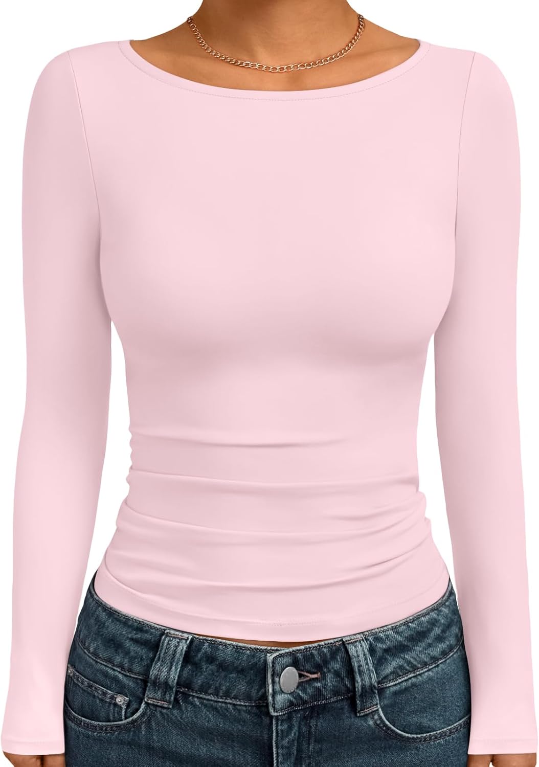 Trendy Queen Women's Boat Neck Tops Long Sleeve Shirts Casual Fitted Tee Shirts Solid Color Fall Basic Clothes 2026