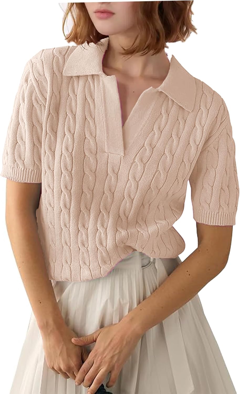 Zeagoo Women Short Sleeve Sweater Pullover Polo Tops V Neck Knit Casual Soft Pullover Shirt