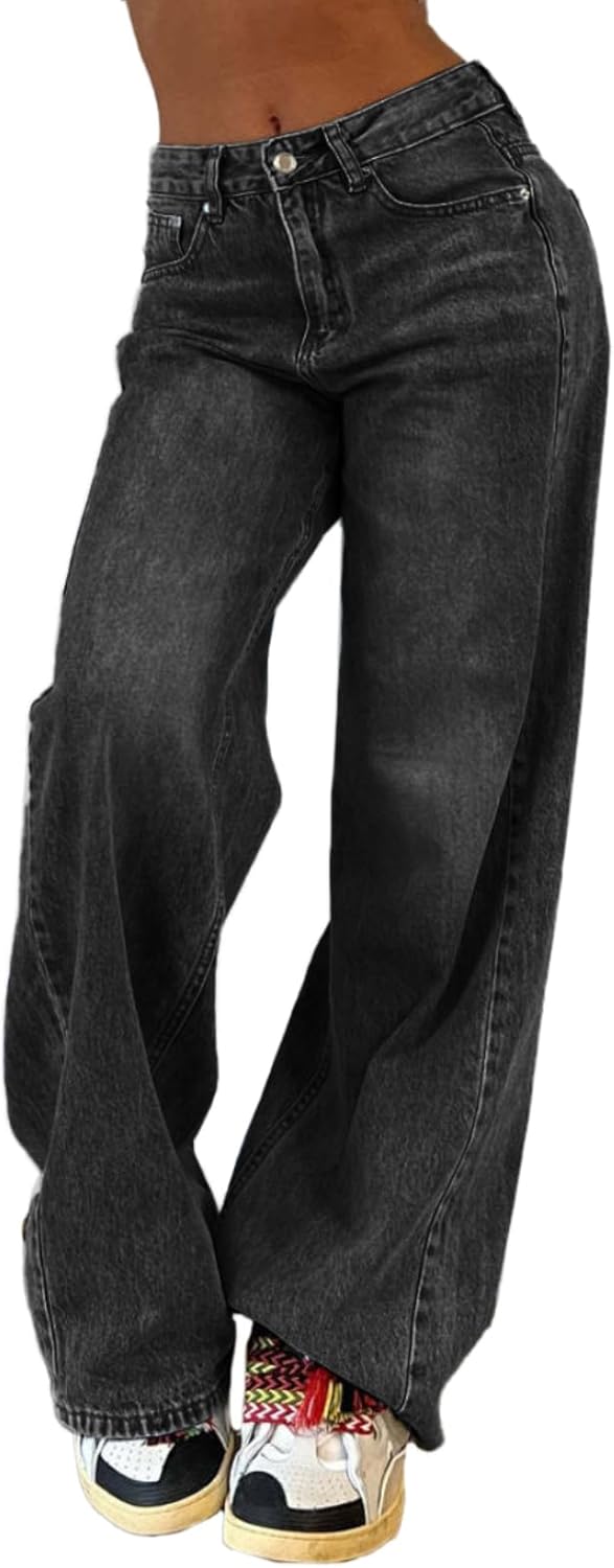 EMMIOL Wide Leg Jeans for Women, Mid Rise Baggy Jeans Plus Size Boyfriends Denim Pants, Y2K Vintage Style
