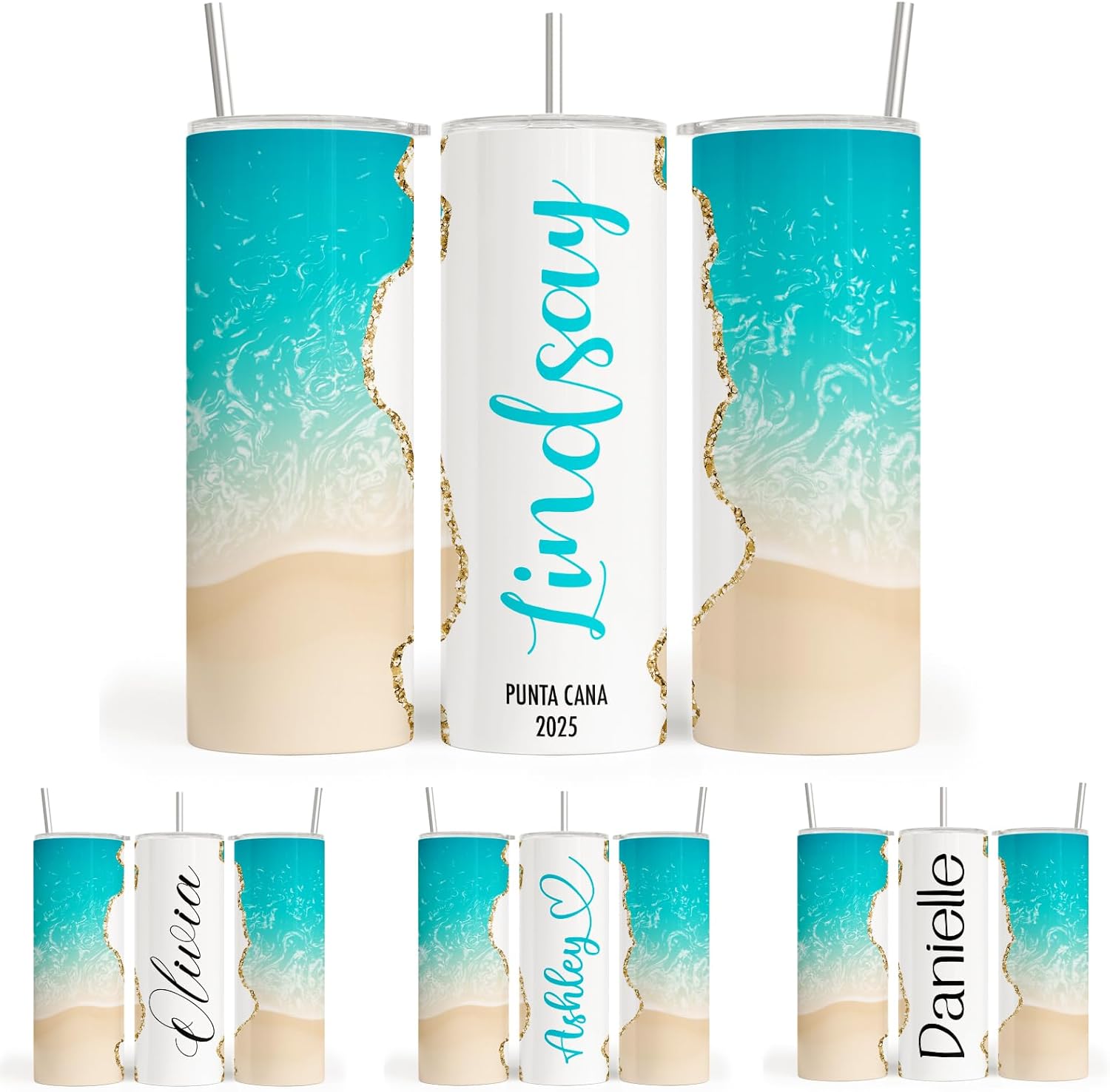 - CUSTOM TUMBLER with NAME, DESTINATION & YEAR: Make your beach memories extra special with our fully customizable skinny tumblers. Add any name, your travel destination, and year for a personal touch that will be cherished long after the trip ends. Perfect for beach vacations, cruises, family getaways, and group trips.