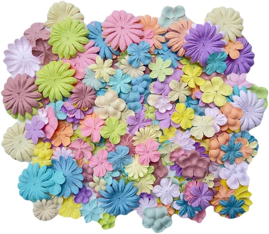 100 Pcs Handmade Mixed Mulberry Paper Flowers 18 mm - 1.5 Inch Scrapbooking Wedding DIY Craft Supplies Card (Pastels Tone)