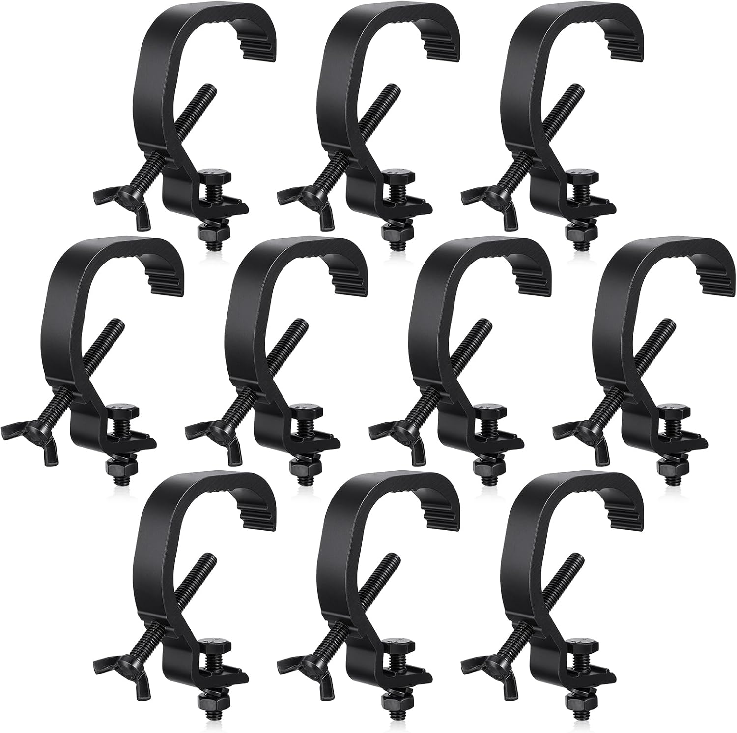 10 Pack Stage Light Clamp Hook, Aluminum Alloy Truss C-Clamp, Heavy Duty Stage Lights Truss Clamp for DJ Lighting Bar Lights Spot Light, Fit for 1.18-2 Inch OD Tube/Pipe, Black