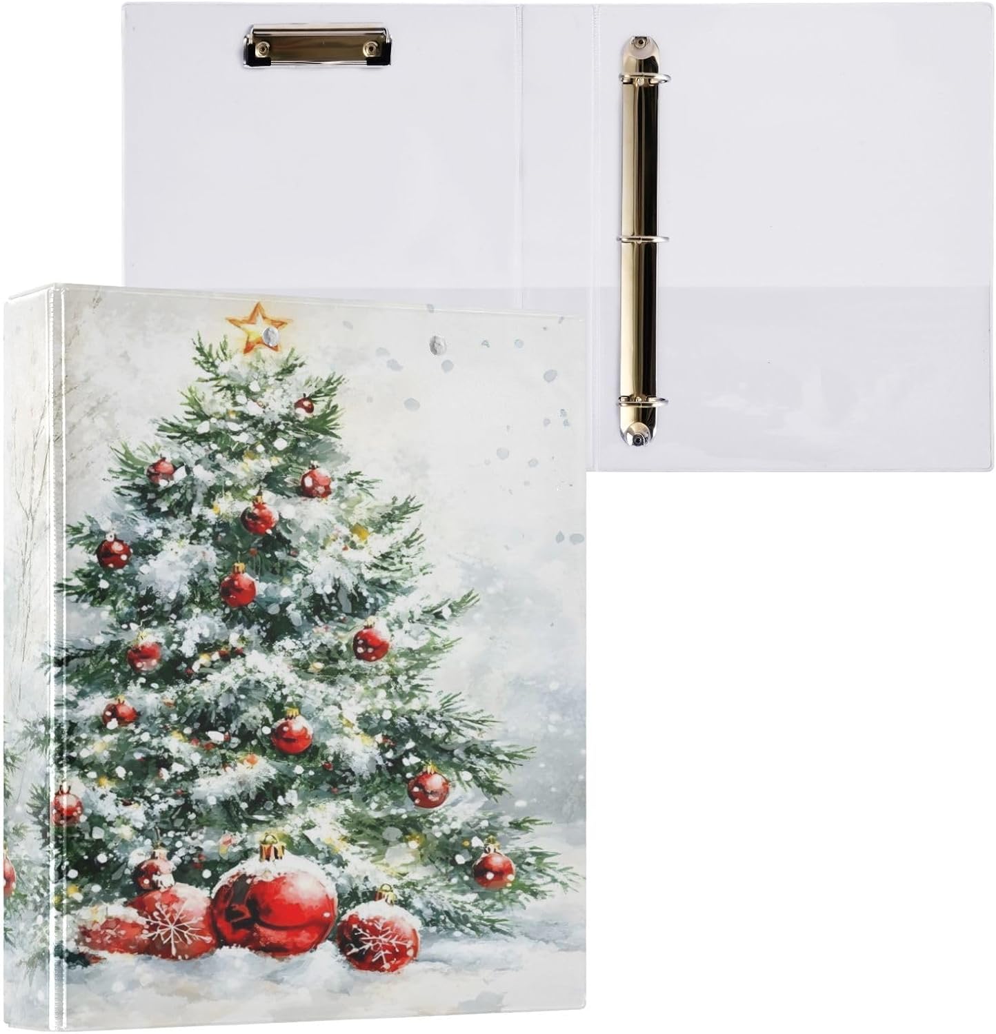 3 Ring Binder Christmas Tree Green Snowflake 1.5 inch Binders Three Ring Binders with Clipboard Fit 8.5'' x 11'' Paper 3 Interior PVC Clear Pockets for Office Supplies