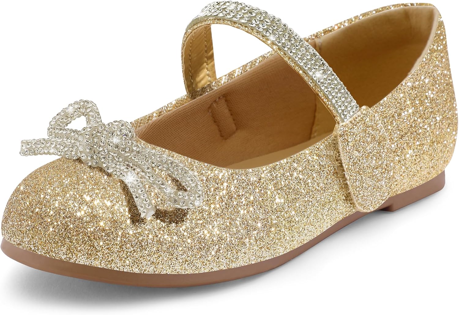 K KomForme Girl's Bow Mary Jane Dress Shoes Ballet Princess Flats with Rhinestone Strap for Party Wedding School, Toddler/Little Kid/Big Kid