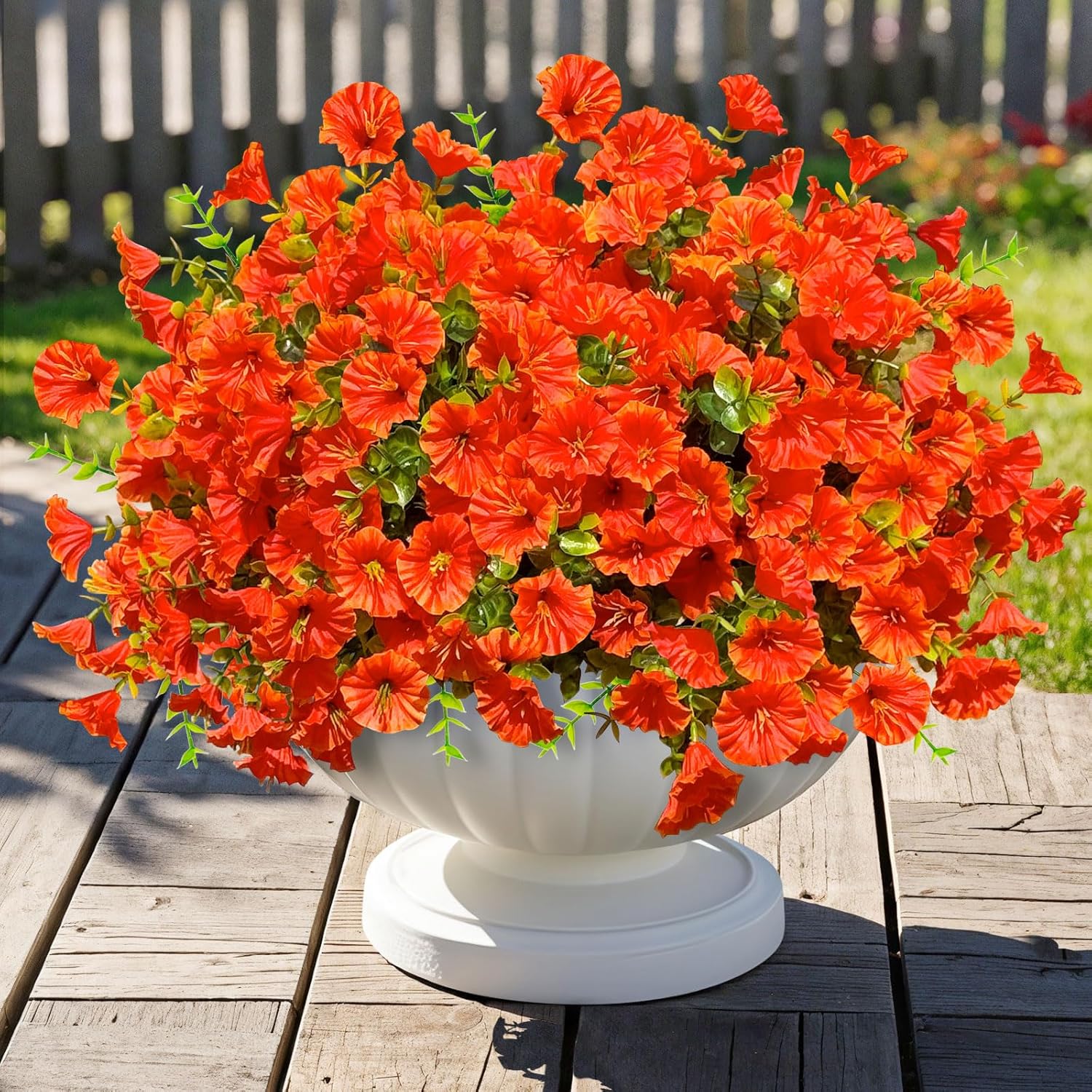 - 【Premium Outdoor Artificial Flowers Collection】You'll receive 10 stems of ultra-realistic orange fake outdoor morning glory flowers(pot not include).our wildflowers artificial flowers 14"L x 8-9"W. Perfect as artificial flowers bulk for creating stunning fall flowers artificial for decoration displays that withstand all weather conditions.