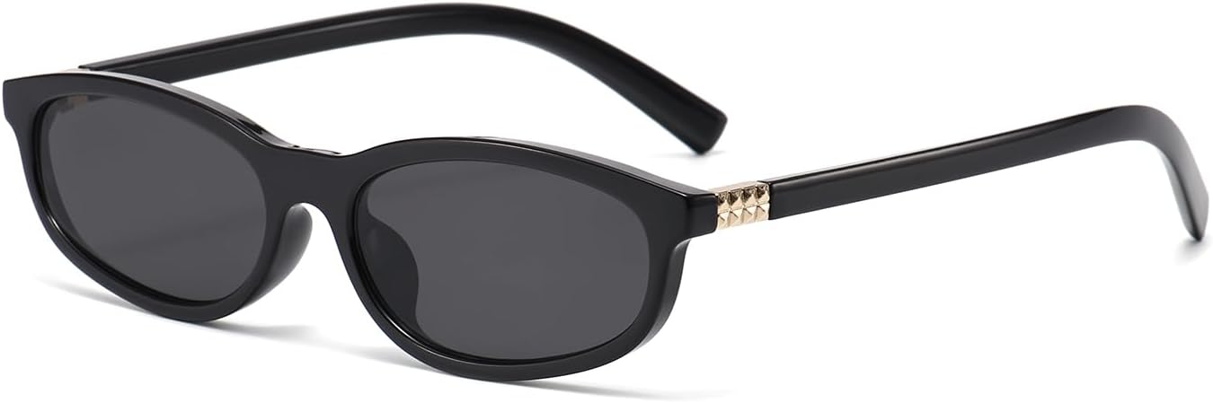 HJSTES Retro Oval Sunglasses for Women Trendy Cat Eye Sunnies Vintage Narrow 90s Y2k Designer Sun Glasses