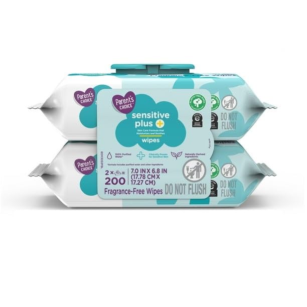 Sensitive Plus Baby Wipes 200ct, For Sensitive Skin With Naturally Derived Ingredients, Plastic-Free Wipes, 100% Purified Water