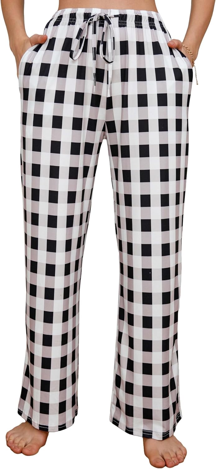 X-Image Comfy Casual Plaid Pajama Pants for Women Drawstring Palazzo Lounge Sleepwear Bottoms with Pockets