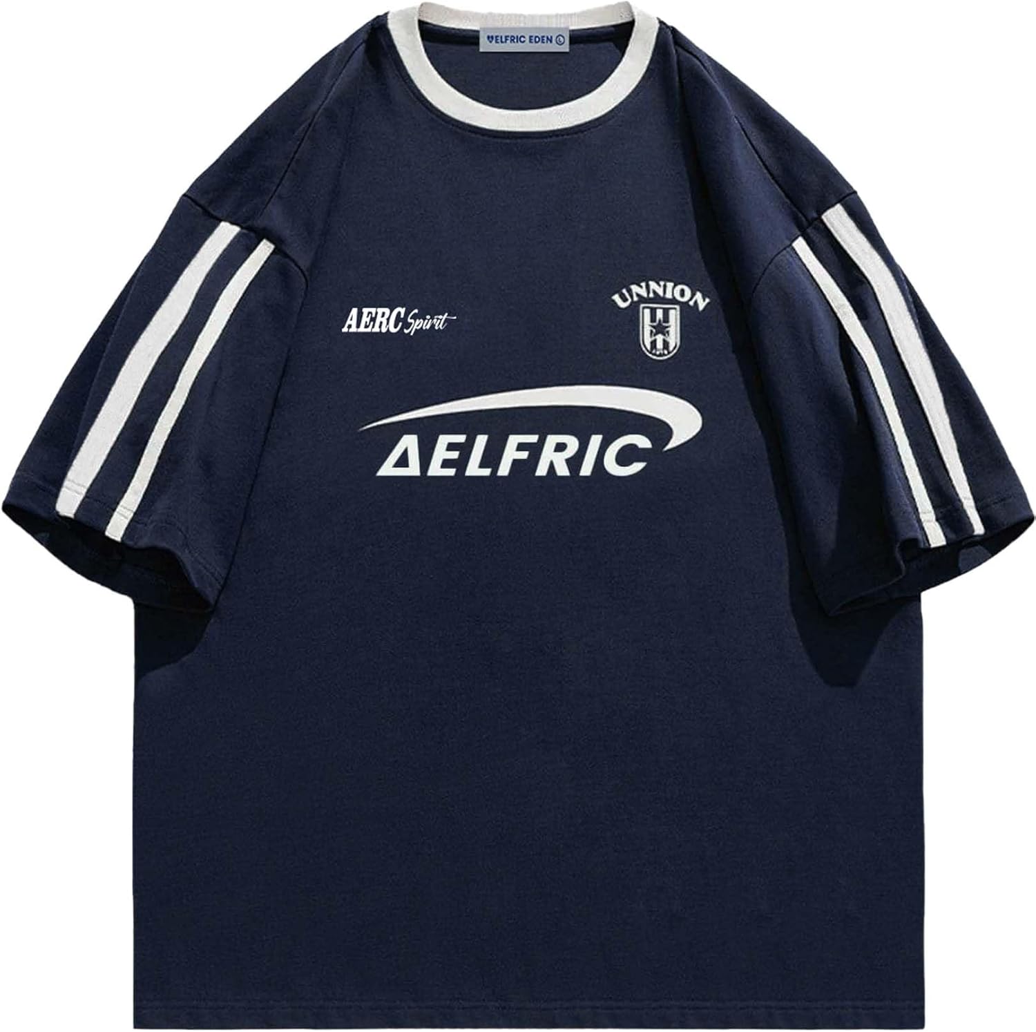 Aelfric Eden Graphic Tees Y2k Women Oversized T Shirts Striped Patchwork Crewneck Unisex Streetwear Tops