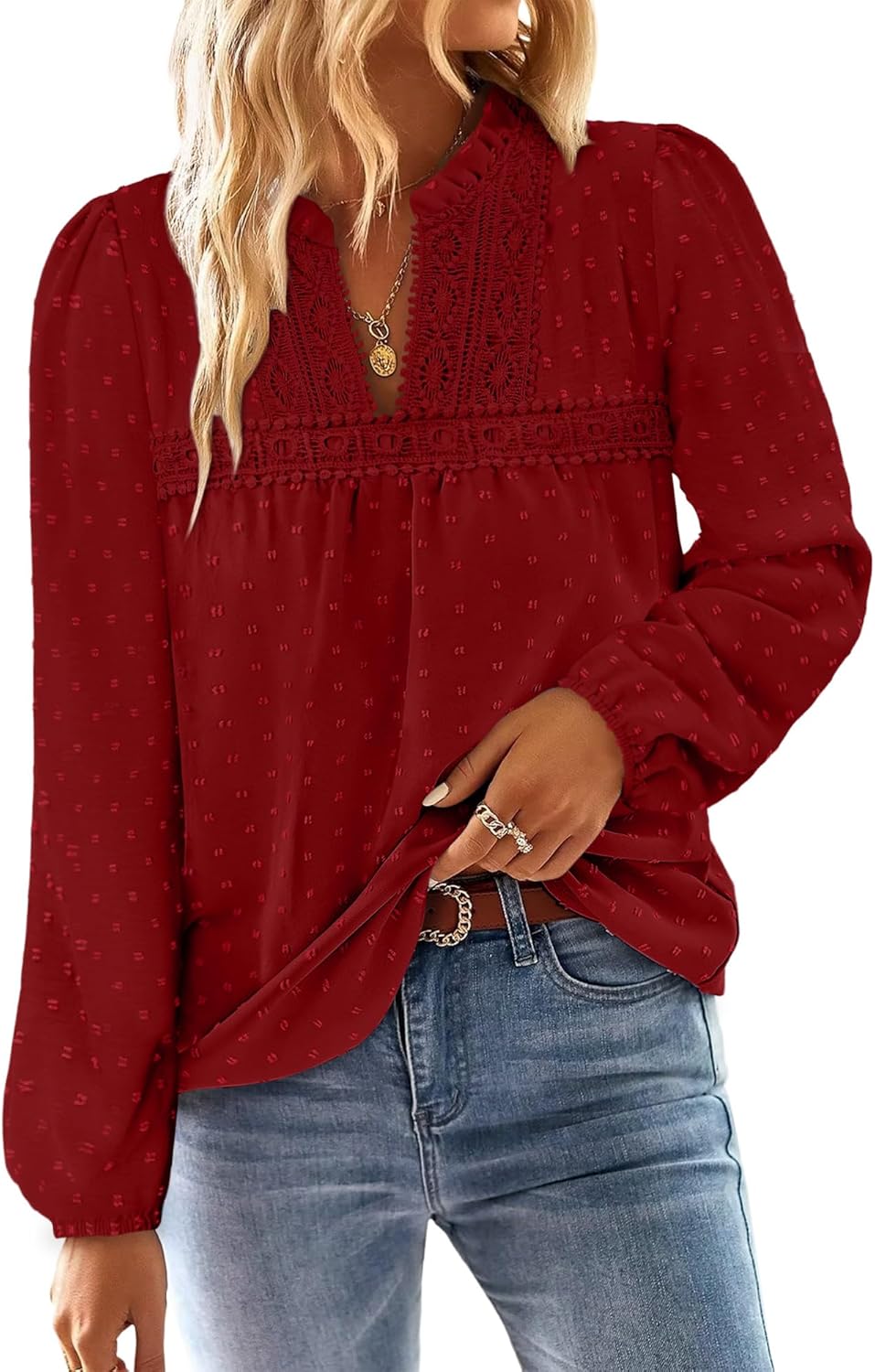 BETTE BOUTIK Womens Boho Fall Fashion Tops Long Sleeve Casual Shirts Flowy Swiss Dot Blouses